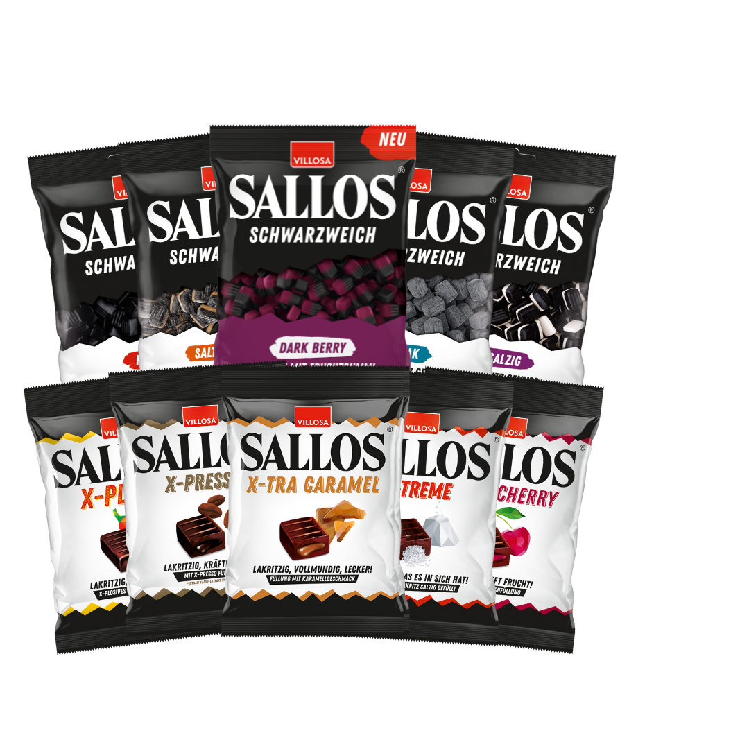 Das Bundle mit würzigem Lakritz bietet dir schwarzen Genuss in 11 Varianten. Ob gesalzen, feurig scharf, mit salzigem Karamell oder doch einfach das würzig-leckere Original - wahre Kenner wissen: SALLOS oder nix!