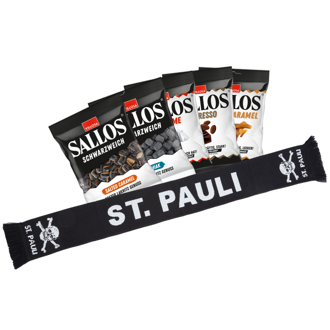 Unsere limitierte SALLOS Stadionbox bringt echten Teamspirit direkt zu dir – mit einem originalen FC St. Pauli Fanschal und einer Auswahl unserer beliebtesten SALLOS Sorten!